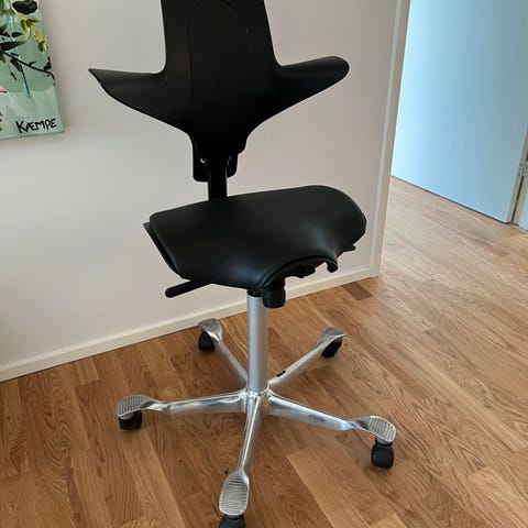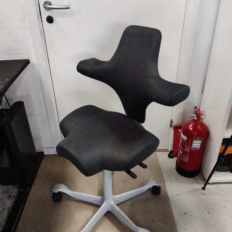 En meget ergonomisk kontorstol anbefalet af mange ergoterapeuter fordi den indbyder til mange forskellige siddestillinger og støtter de rigtige steder.