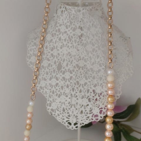 Foto 12: Ferskvandsperler og enkelte glas og metal vedhæng.Pris dk. 400,-