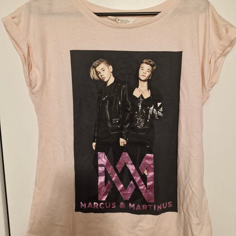 Trøjen har et tryk af Marcus & Martinus på fronten.