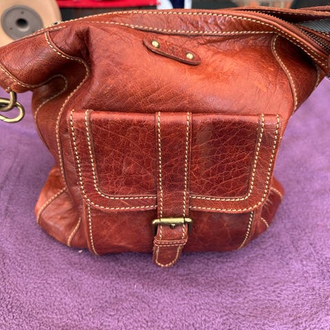 GAB Taske i blå læder med turkis detaljer. Tasken har flere rum og lommer, herunder udvendige lommer med tekstur. Indvendigt foret med turkis stof og lukket med lynlås. Tasken har både håndtag og aftagelig skulderrem, hvilket giver flere bære muligheder.