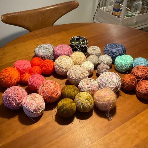 Det hvide garn er “flettet ud” eller hvad pokker det hedder 😁 Det lyserøde ikke.