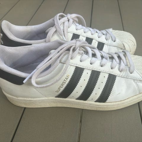 Sneakers, str. 37,5, Adidas, Hvid, Næsten som ny, Fine klassiske Adidas sko - Stan Smith - hvide med blå skrift og blå broderet/tråd kryds på skoen. Med snørebånd