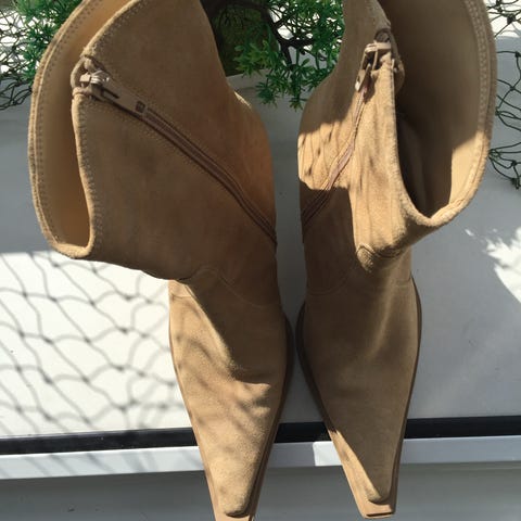 Støvler, str. 38,5, Morlands, Mellembrun, Ruskind/rulam, God men brugt, Lækre varme Morlands støvler, lettere brugte, men pæne og velholdte, i god engelsk kvalitet. Dejligt varme, med lammeskind selv i bunden af støvlerne. Passer bedst til en smal fod, men skindet udvider sig med foden. Køber betaler porto.