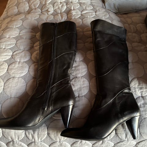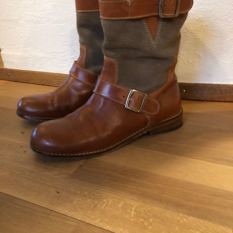 Støvler med langt skaft i gråt læder med super smukke knappedetaljer. Str 40. Mærket er Mentor. Nypris 2500kr