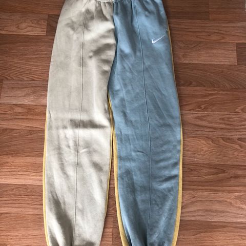 Fine Nike Dri-Fit løbebukser. Består af polyester, elastan, nylon. Ikke kedelige sorte (som næsten alt træningstøj er). Har diskrete indershort. Sender gerne eller kan afhentes på Hovedbanegården.