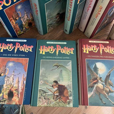 Harry Potter Hardback Gyldendals 2. udgave med Per Jørgensens prisbelønnede forside illustrationer. Af J. K. Rowling. Udgået fra forlaget.