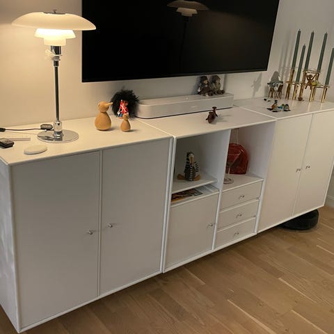 Montana , b: 70 d: 38 h: 70, 3 år nyt 2x Montana 1118 Cover i farven New White 101 inkl topplade, ophæng men monteret på montana ben.