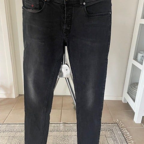 Diesel jeans til mænd i sort farve. Størrelse W31 i taljen og længde 34. Fremstillet i slidstærkt materiale med klassisk design og lommer bagpå. W31 L34
