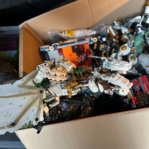 Stor kasse med blandet klodser. Samlevejledning til indholdet følger med, men det hele ligger samlet i plastikkasse.