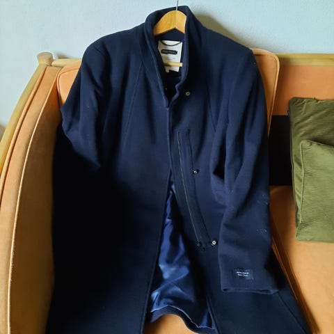 Flot 3/4 frakke med krave, lommer og knapper. Str.38 70% uld se fotos