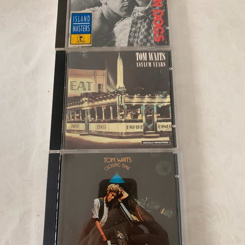 Tom Waits CD-samling bestående af albummerne Rain Dogs, Swordfishtrombones, Bone Machine, Mule Variations og flere. Musikgenrer inkluderer rock og blues. CD'erne