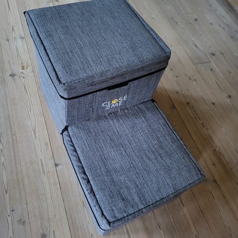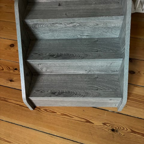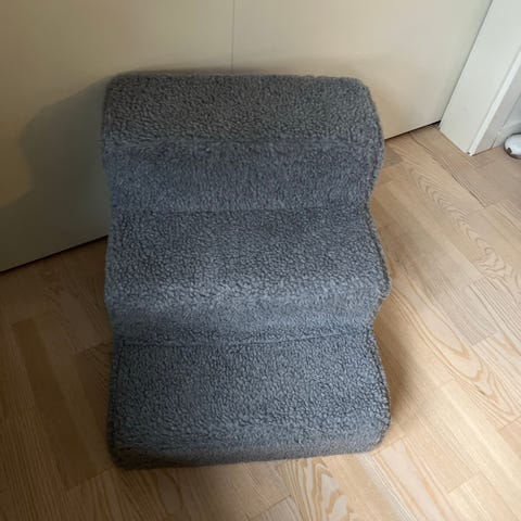 Pæn og praktisk trappe til hundehvalp der ikke kan hoppe op… kan vel også bruges til familiens minigris, kanin eller andre smådyr.