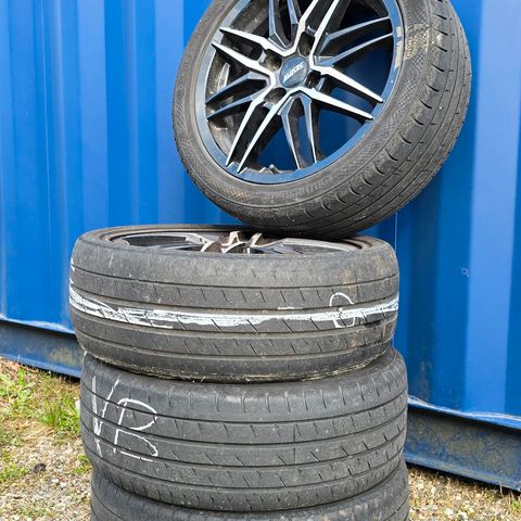 Nexen dæk med fælge i størrelsen 205/55 R16. Fælgene er lavet af aluminium og har en sølvfarve. Sættet består af fire dæk med fælge, velegnet til personbiler. Sidst kørt på Ford Mustang