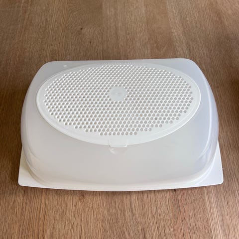 Tupperware osteklokke med filter i låget - som holder osten frisk.
