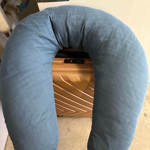 That's mine amme- og graviditetspude. Aldrig brugt. Aftageligt vaskbart betræk af bomuld. Fyld af antibakterielle PVC-frie EPS-kugler.