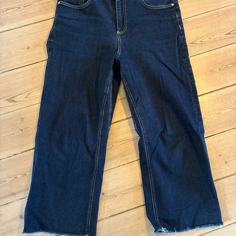 Mos Mosh jeans i blå farve, taljemål W26. Jeansene har en kontrastfarvet sidepanel.