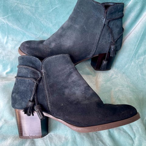 De er størrelsessvarende og kun gået med ca. 2 gange, har elastik i siden og er velholdte.