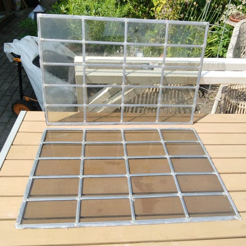 Et sæt velholdt blyindfattede fortsatsruder. Kan også anvendes til andre formål fx dekoration.