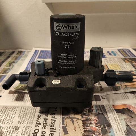 Whale Evenflow trykvandspumpe til ferskvand, 10 liter/min, 24 volt, model EF2.1024. Helt ny og ubrugt. Se fotos for specifikationer. Nypris 1.698 kr. Køb til næsten 1/3 af prisen.