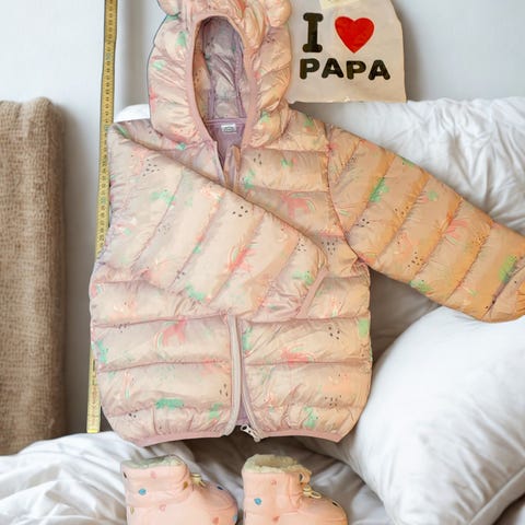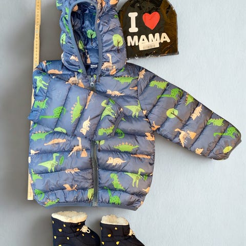En bundle til vinteren, som indeholder en hatte, en varm jakke, og varme vintersko.