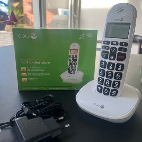 Doro trådløs telefon med store knapper. Ubrugt, men æsken har dog været åbnet.
