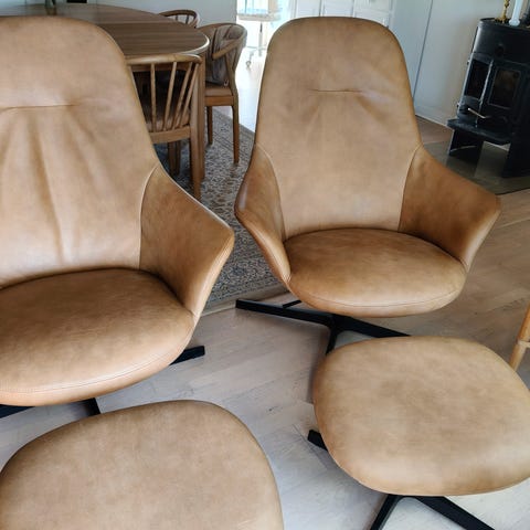 I sort læder, købt ved IDEmøbler. Model: Yale. Nypris for stole 2500kr. pr. stk. Bord medfølger.