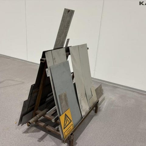 To blå perforerede metalplader i størrelser 800x800 og 400x 800 mm Pladerne har firkantede huller og kan anvendes til opbevaring eller organisering. Materialet er metal, og farven er blå.