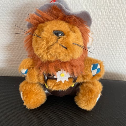 Lille tyrolerbamse på ski samt en gul tigerbamse. Pris/stk. 15