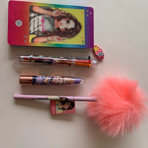 Top Model børnelegetøj bestående af flere notesbøger og kreative materialer samt mappe til opbevaring.