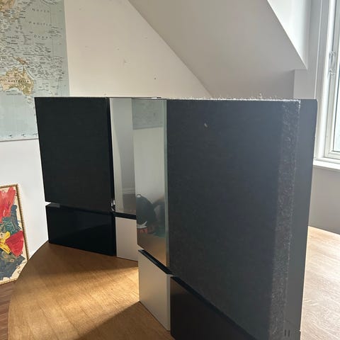 Det sidste B&O skal videre. Alt fungerer, dog skratter den ene Beolab 4000 når der skrues op, så der skal nok skiftes en enhed. Der kan medfølge en Apple AirPort Express, således der kan streames fra telefonen/iPad mv til anlægget. Det hele skal helst gå samlet og bud modtages.