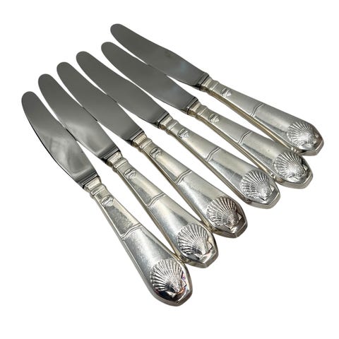 Royal Copenhagen / C.V. Eigen Solingen kniv med 13 cm blad og porcelænshåndtag musselmalet blåt mønster. Knivens samlede længde er cirka 24 cm.