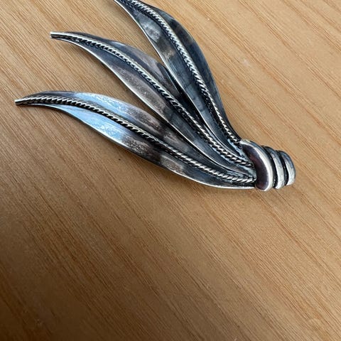 Ulrich håndlavet broche i sterlingsølv. Designet med en bladform og detaljeret overflade. Fremstillet i Danmark.