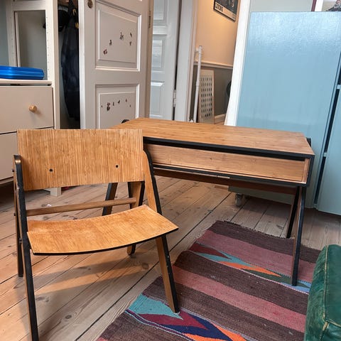 Lækkert skrivebord og stol fra danske we do Wood. Lavet i bambus