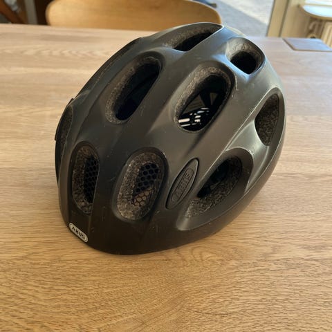 Abus cykelhjelm i hvid farve med flere ventilationsåbninger. Hjelmen har et justerbart spændesystem for bedre pasform og komfort. Designet til at give beskyttelse under cykling.