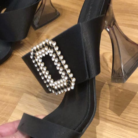 Sandaler, str. 38, Næsten som ny, Flotte festlige sandaler med lynlås og glittersten og sløjfe. Kun brugt en enkelt gang.