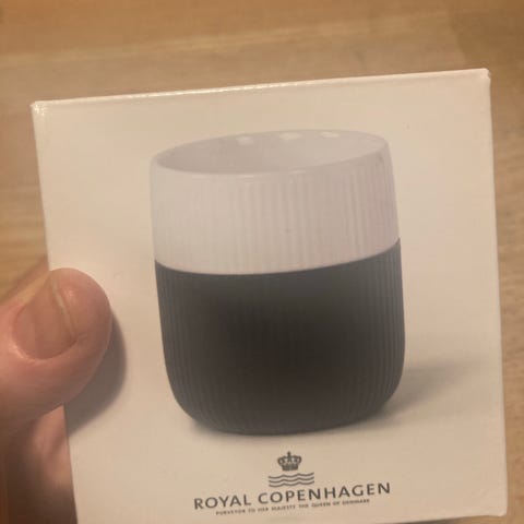 UDGÅET - Royal Copenhagen Fluted Signature højhankskop med underkop og æsker dertil ☺️