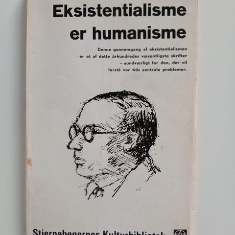 Eksistentialisme er humanisme. Af Jean-Paul Sartre. Vinten, 1968. Enkelte blyant-indstregninger og noter men ellers i pæn stand uden slid eller skader