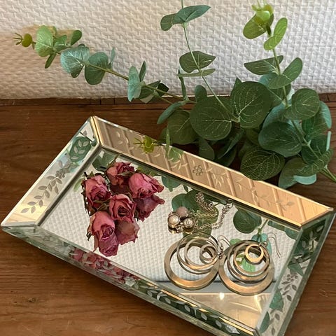 Spejlbakke med rustikke bloklys.