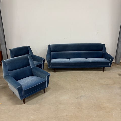 Elegant retro sofasæt i blågrøn uld