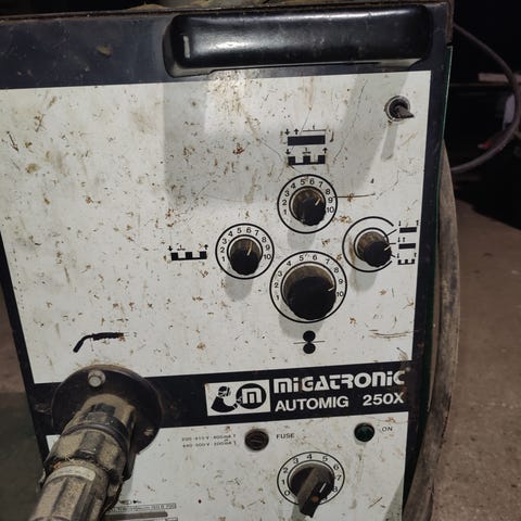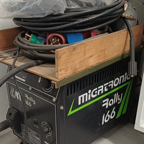 Migatronic automig 223i duo . Mig/mag mig-lodning . Der er både argon og co2 flasker og manometer med . Maskinen har kun kørt det som der er brugt af tråd på de to ruller der sidder i maskinen . Virkelig en lækker svejser .