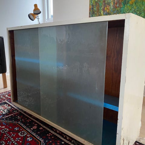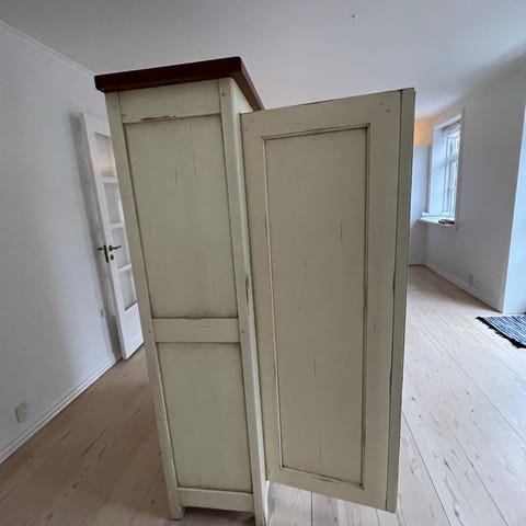 Fint gammelt retroskab til wc eller køkken til, det er lidt større end den type normalt er, så der kan faktisk være kaffe osv. i det d 16 h 42 b 97 cm.