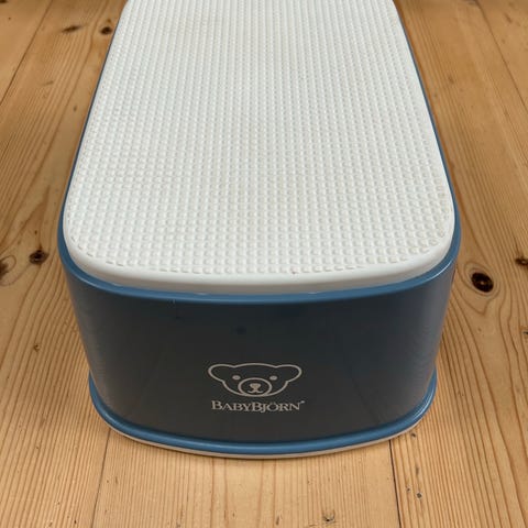 Skammel og hagesmæk uden brugsspor. Hagesmæk er super nem at rengøre og tørres bare over med klud så man ikke har så meget vasketøj