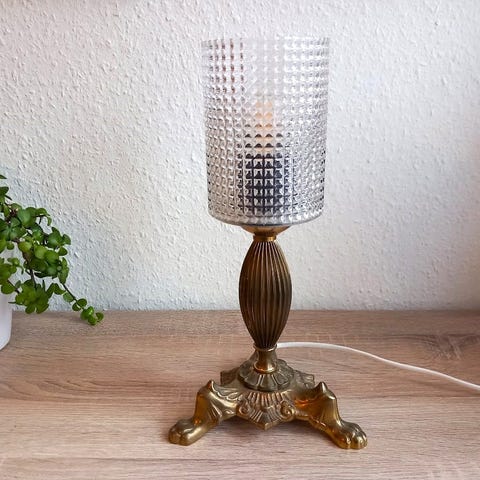 Glas og messing bordlampe