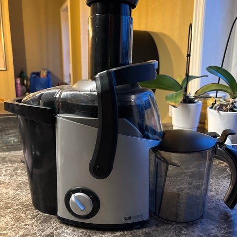 OBH Nordica Vitamix Pro Steel Juice Extractor med en kapacitet på 1,5 liter. Fremstillet i rustfrit stål med tilhørende plastikdele, herunder beholder og presser. Designet til at udvinde juice fra frugt og grøntsager. Leveres med original emballage og manuelle tilbehør.