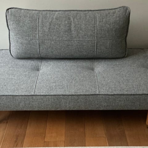 Daybed som man kan sove på/bruge som sofa m.m. Den står meget flot da den ikke er blevet brugt. Farven er koksgrå og materiale er uld.