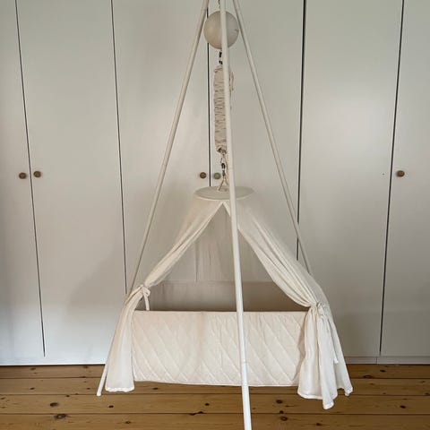 Sælger denne fine Moonboon vugge med motor. Bunden er flad og deraf prisen. I meget god stand og ikke synlige brugsspor. Underlag medfølger.
