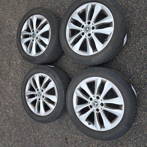 4 originale mercedes fælge med bridgestone vinterdæk. Har siddet på en mercedes a-klasse