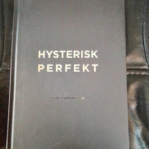Mads Timmermann Hysterisk Perfekt bog med sort omslag. Indeholder tekst og indhold på dansk, herunder kapitler som Intro, Super Selvvilje, Meningsfulde Mennesker, Uforenende Energi, Luksuriøs Livskvalitet og Ekstrem Selvtillid. Bogen er velegnet til læsere interesseret i personlig udvikling og selvforståelse.