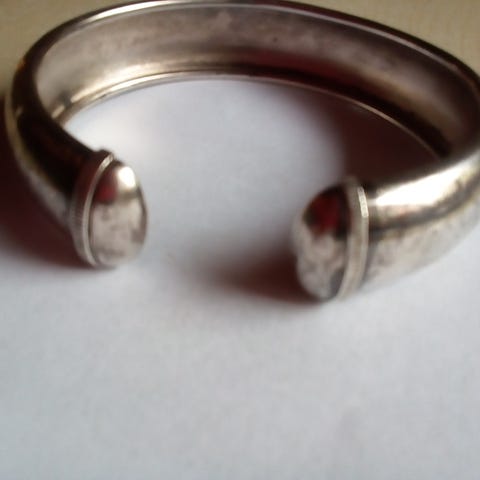 Bredde ca 3 mm,stempel med utydelige initialer før 925. diameter lukket ca 6,5 cm
