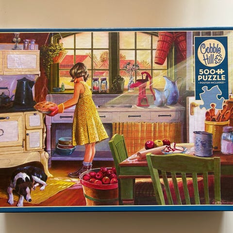 Cobble Hill random cut 500 brikker puslespil med motiv af farverige huse og bylandskab. Puslespillet er lavet af pap og har et detaljeret design, der udfordrer brugeren. Velegnet til voksne og ældre børn, der ønsker en kompleks puslespilsoplevelse.